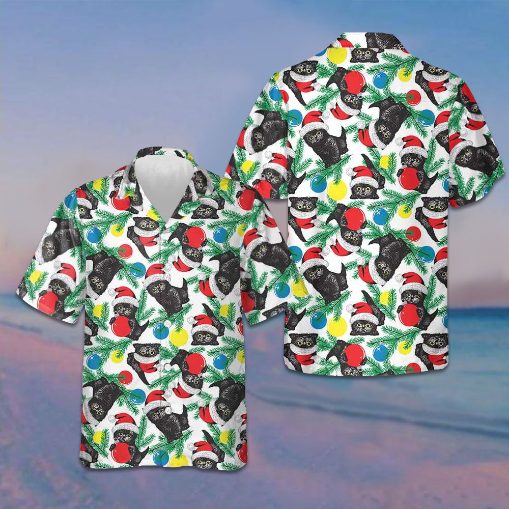 Black Kitten Wearing Santa Hat Hawaiian Shirt Funny Christmas Cat Lovers Shirt Gift Ideas