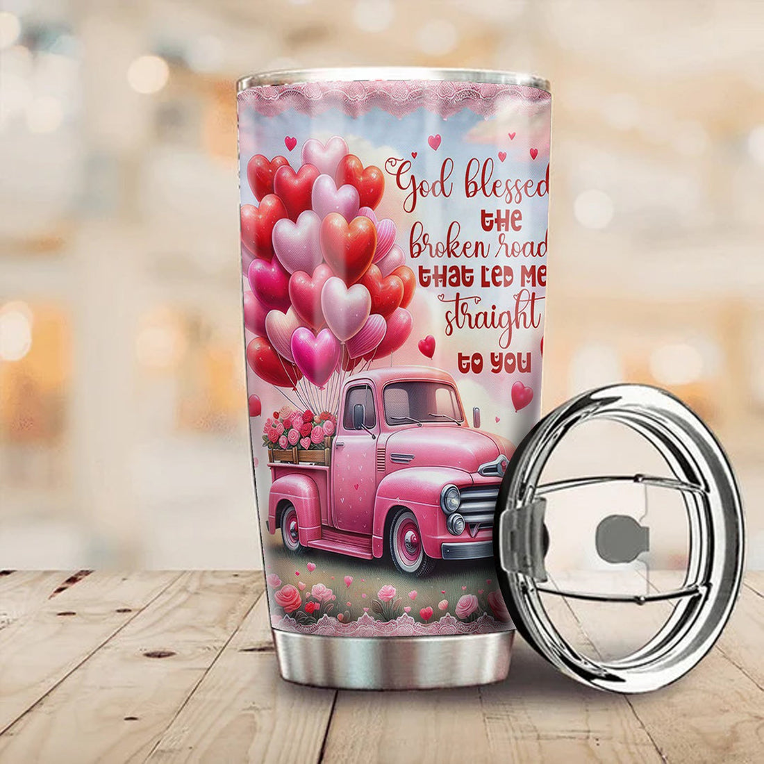 Happy Valentine's Day Tumbler God Bless The Broken Road That Led Me Straight To You