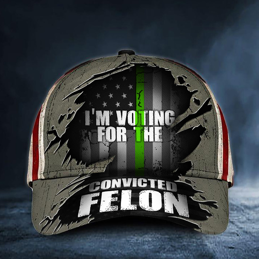 Thin Green Line I'm Voting For The Convicted Felon Texas Flag Hat Green Line Vote For Felon