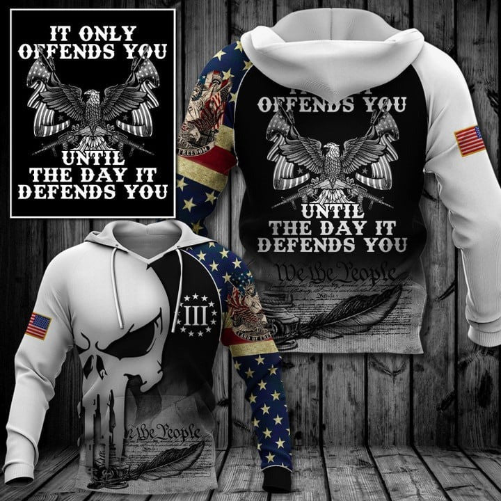 It Only Offends You Until The Day It Defends You Hoodie Patriotic Land Of Freedom Apparel Men's