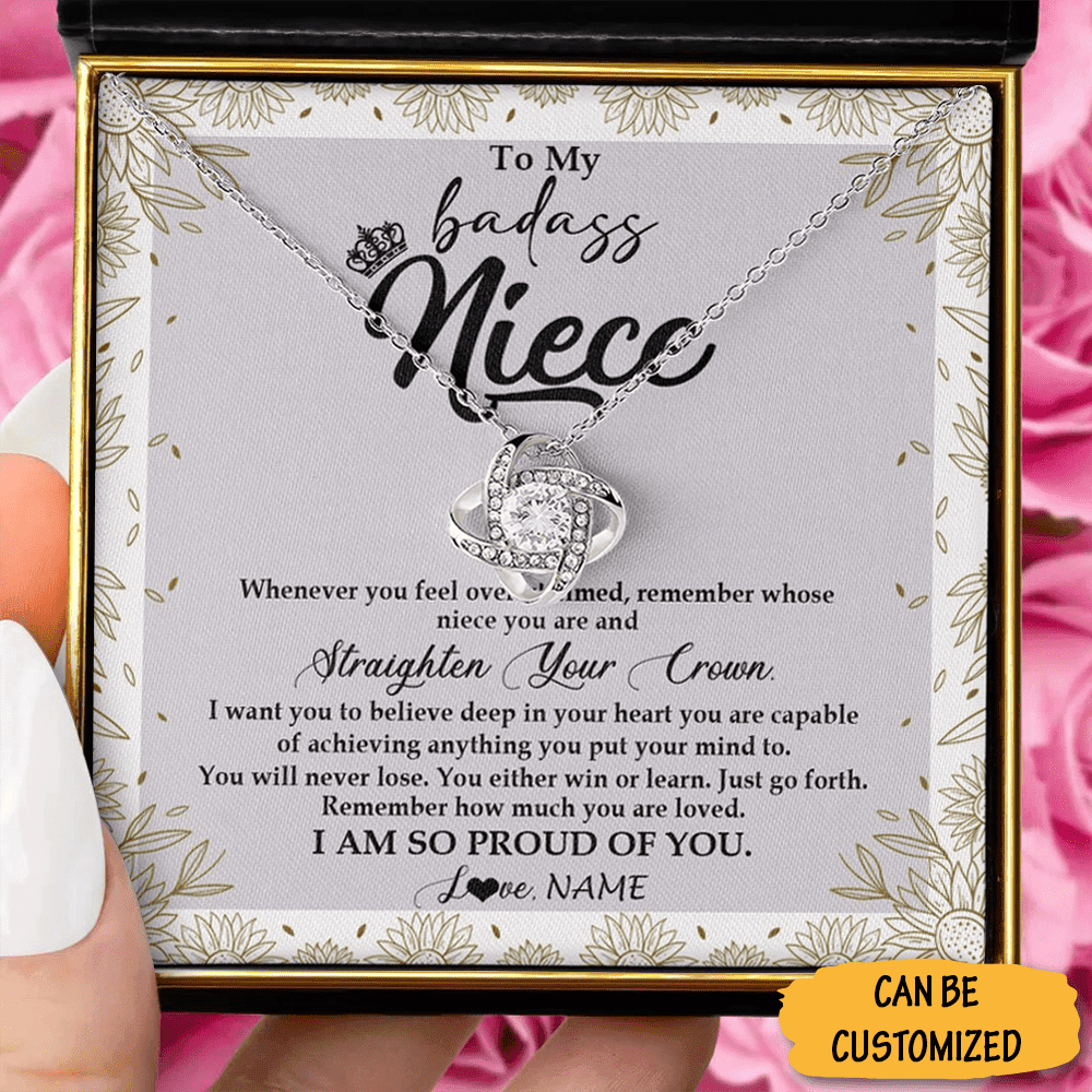 Custom To My Badass Niece Necklace Sterling Silver Love Knot Pendant Straighten Your Crown Necklace