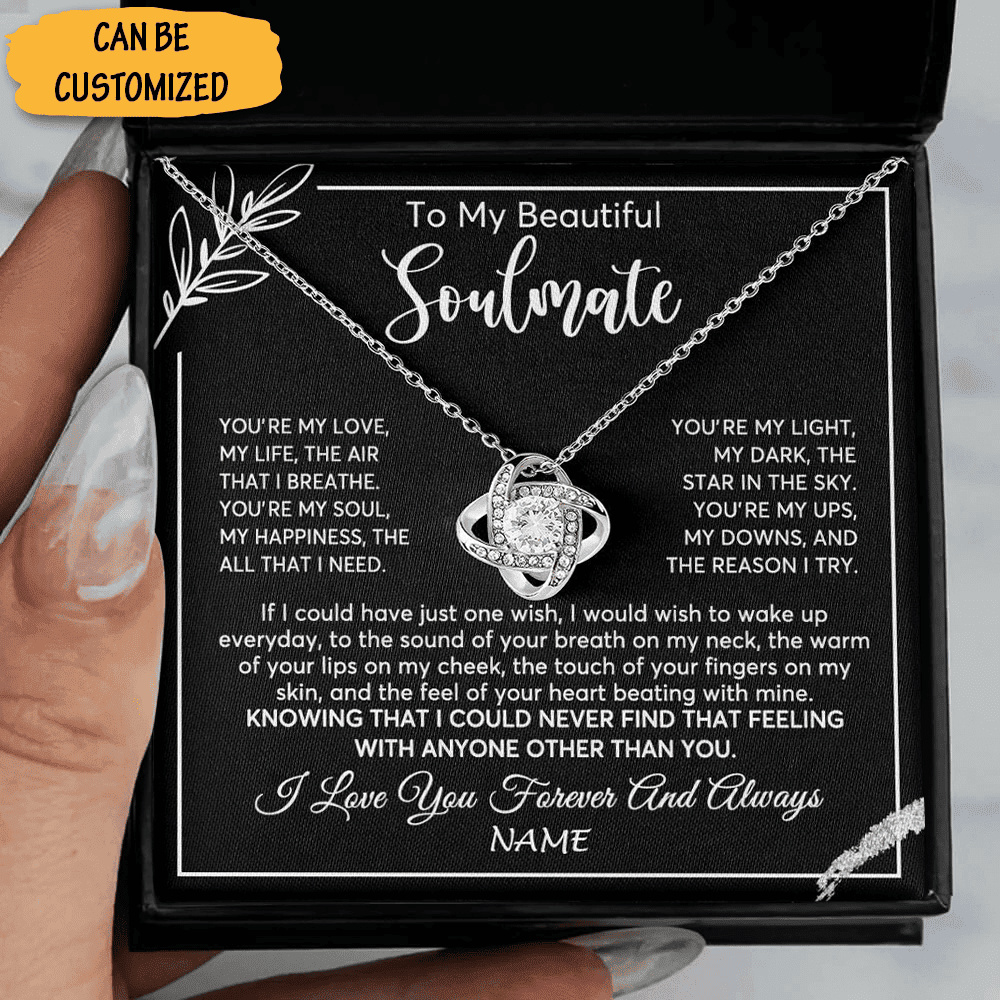 Personalized To My Beautiful Soulmate Necklace Sterling Silver Love Knot Pendant Women's Soulmate Necklace Gift Box