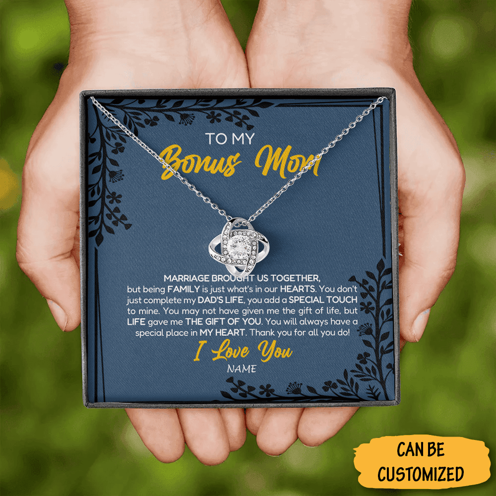 Personalized To My Bonus Mom Necklace Sterling Silver Love Knot Necklace Perfect Bonus Mom Christmas Gifts