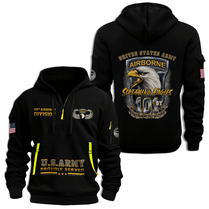 101St Airborne Division US Army Proudly Served Half Zip Hoodie Unique Gifts For Veterans
