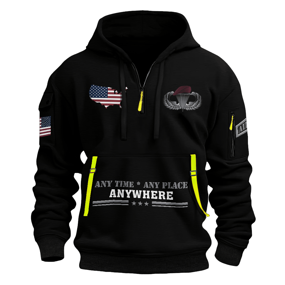 Any Time Any Place Anywhere Airborne Paratrooper Veteran Half Zip Hoodie Army Paratrooper Gifts
