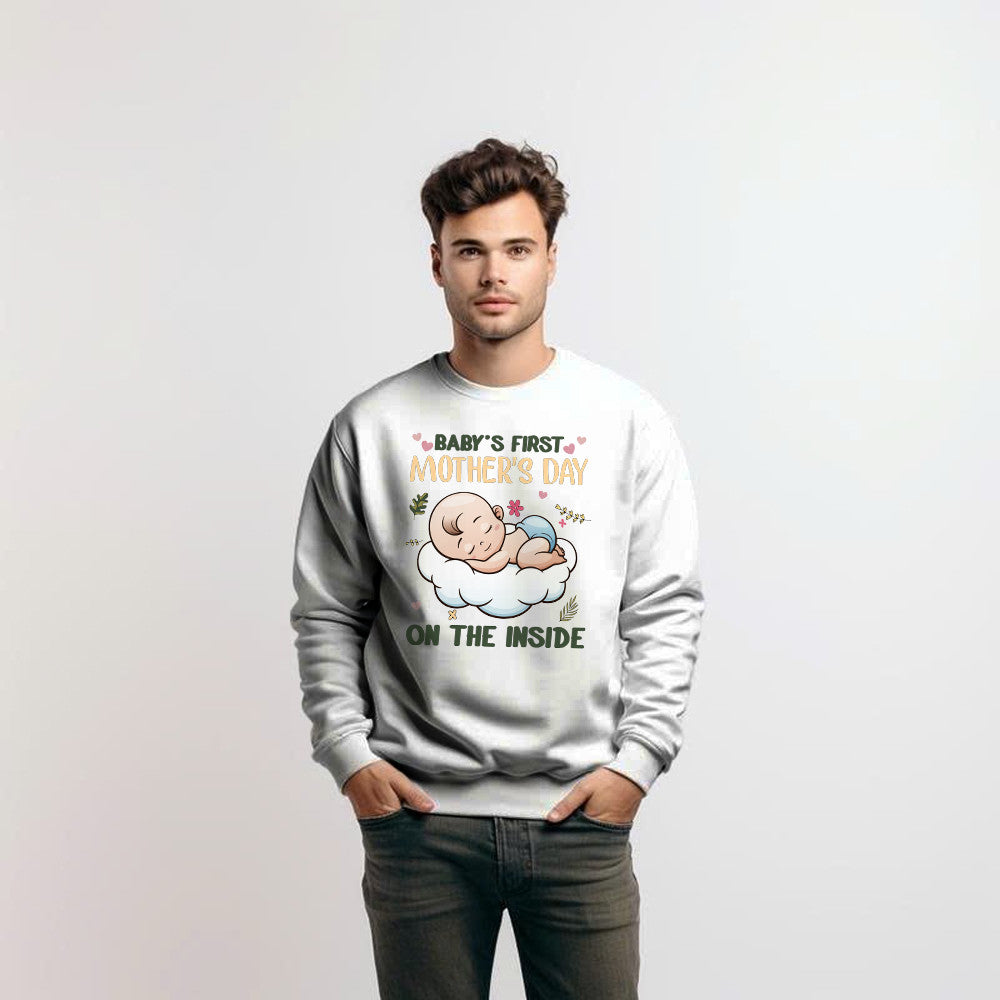 Baby's First Mother's Day On The Inside Sweatshirt Cute Adorable New Mom Shirts Presents