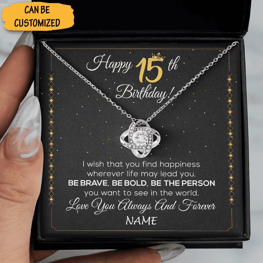 Custom Happy 15th Birthday Knot Necklace 15 Year Old Birthday Necklace With Message Card Gifts For Daughter