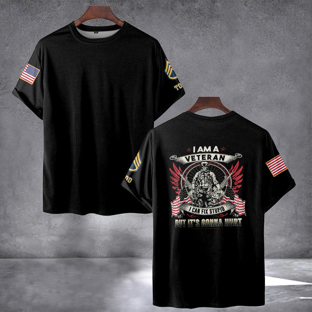 Custom I Am A Veteran I Can Fix Stupid But It's Gonna Hurt Shirt Veteran T-Shirt Gifts For Him