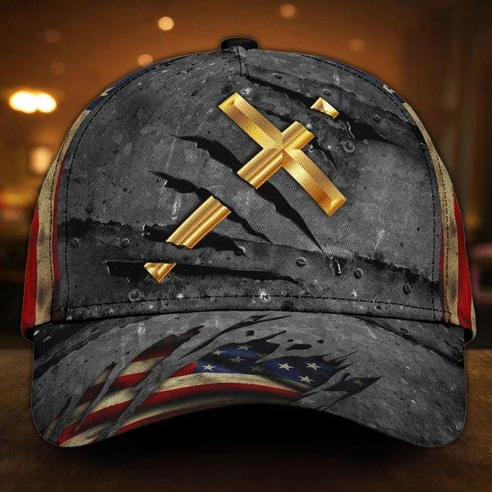 Cross Christian Hat 3D Vintage Unique USA Flag Cap Patriotic Christian Gift For Men.