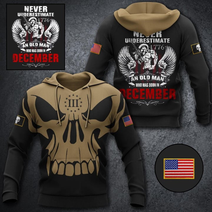 Never Underestimate An Old Man Born In December Hoodie Gun Lover Gifts For December Birthday.