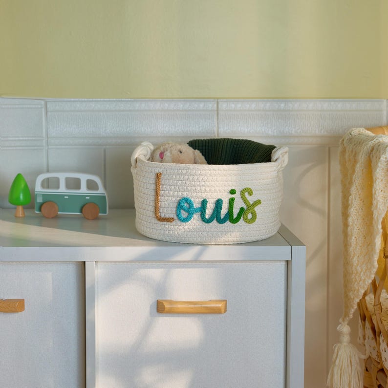 Personalized Handmade Baby Basket – Custom Baby Gift, Baby Shower Gift, I-Cord Knitting Storage & Toy Organizer