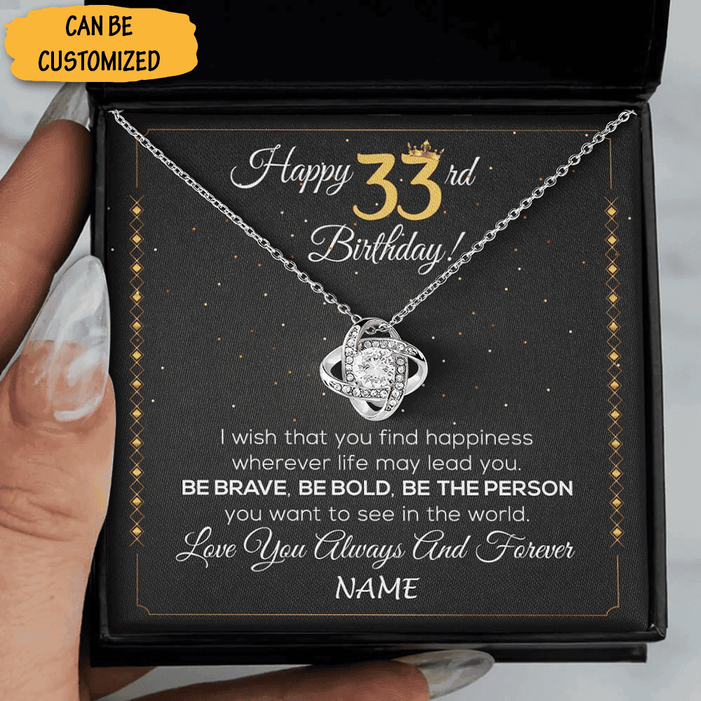 Personalized Happy 33Rd Birthday Necklace Silver Love Knot Necklace Birthday Gift Ideas For Wife