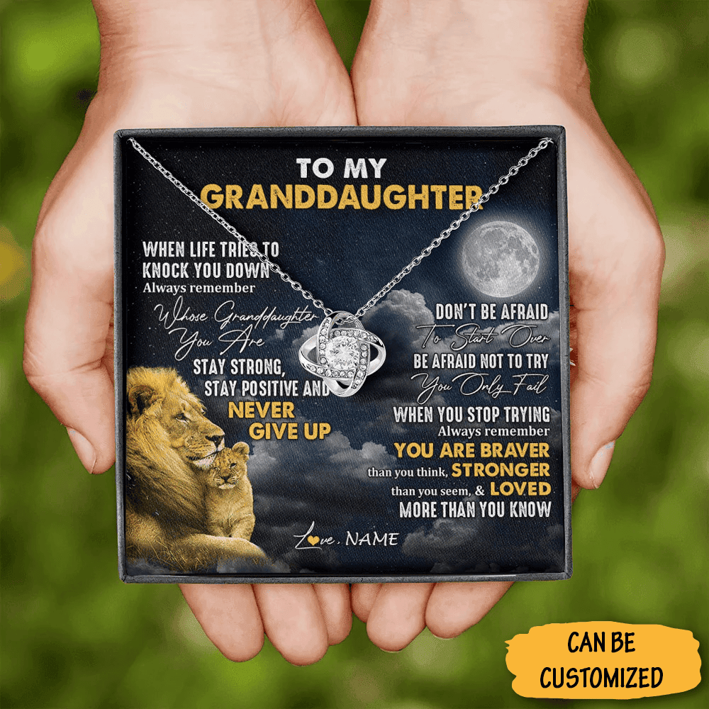 Personalized Lion To My Granddaughter Necklace Love Knot Necklace Special Gift For Great Granddaughter.