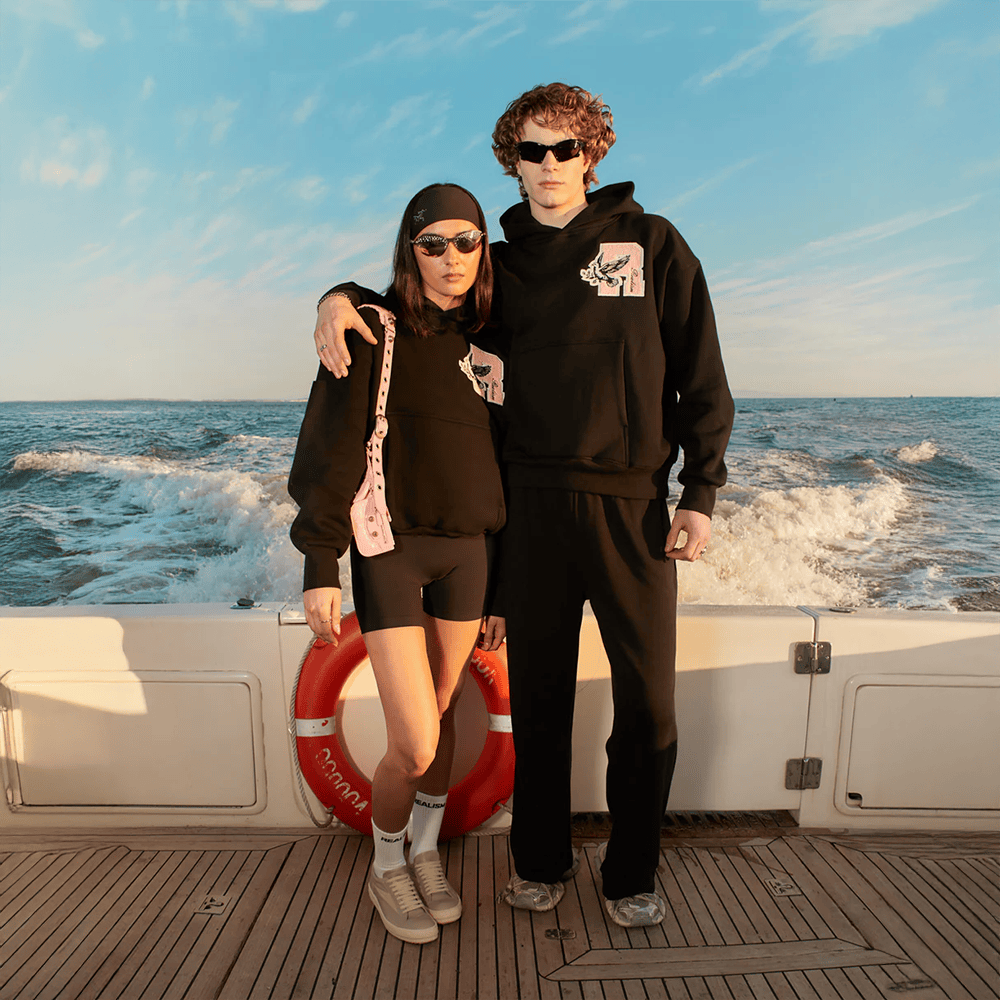 - Double needle stitching; Pouch pocket; Unisex sizing.
